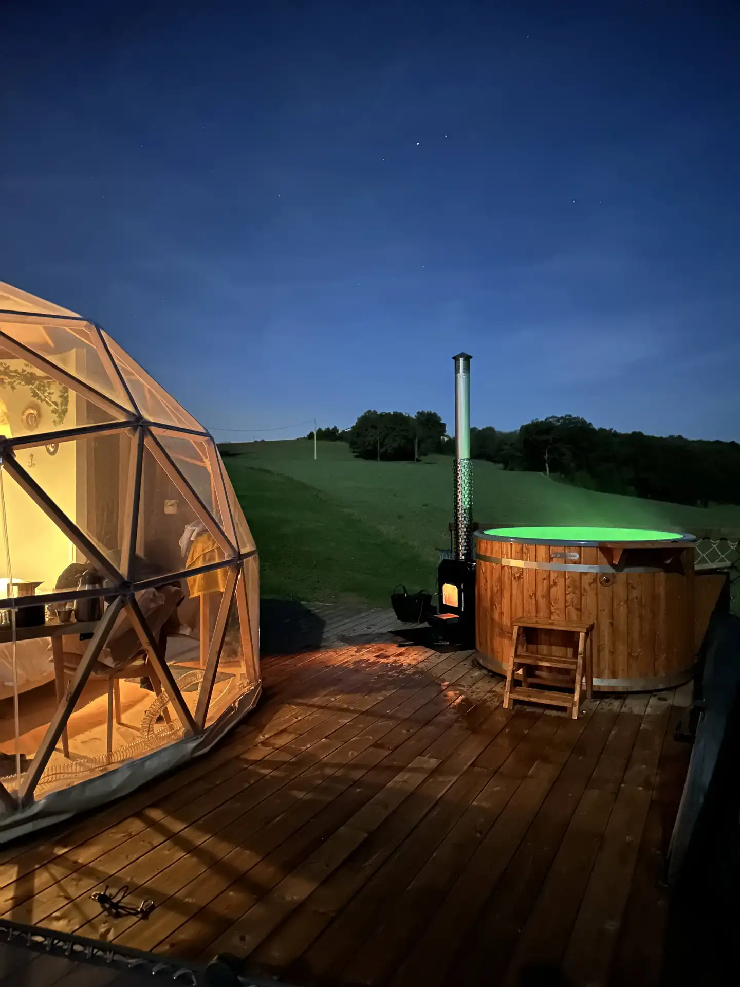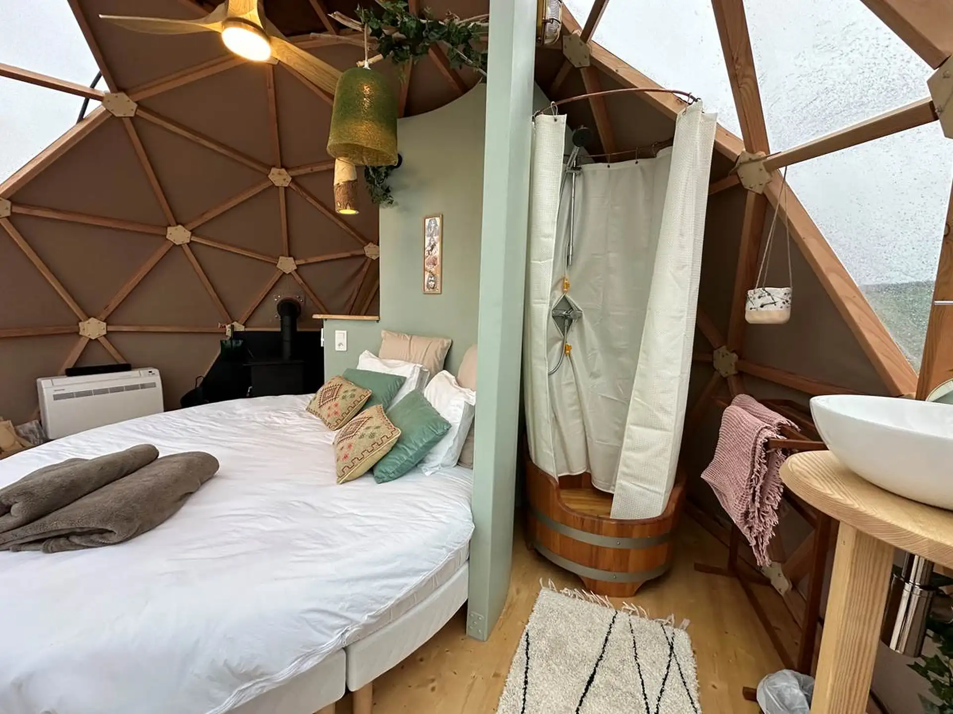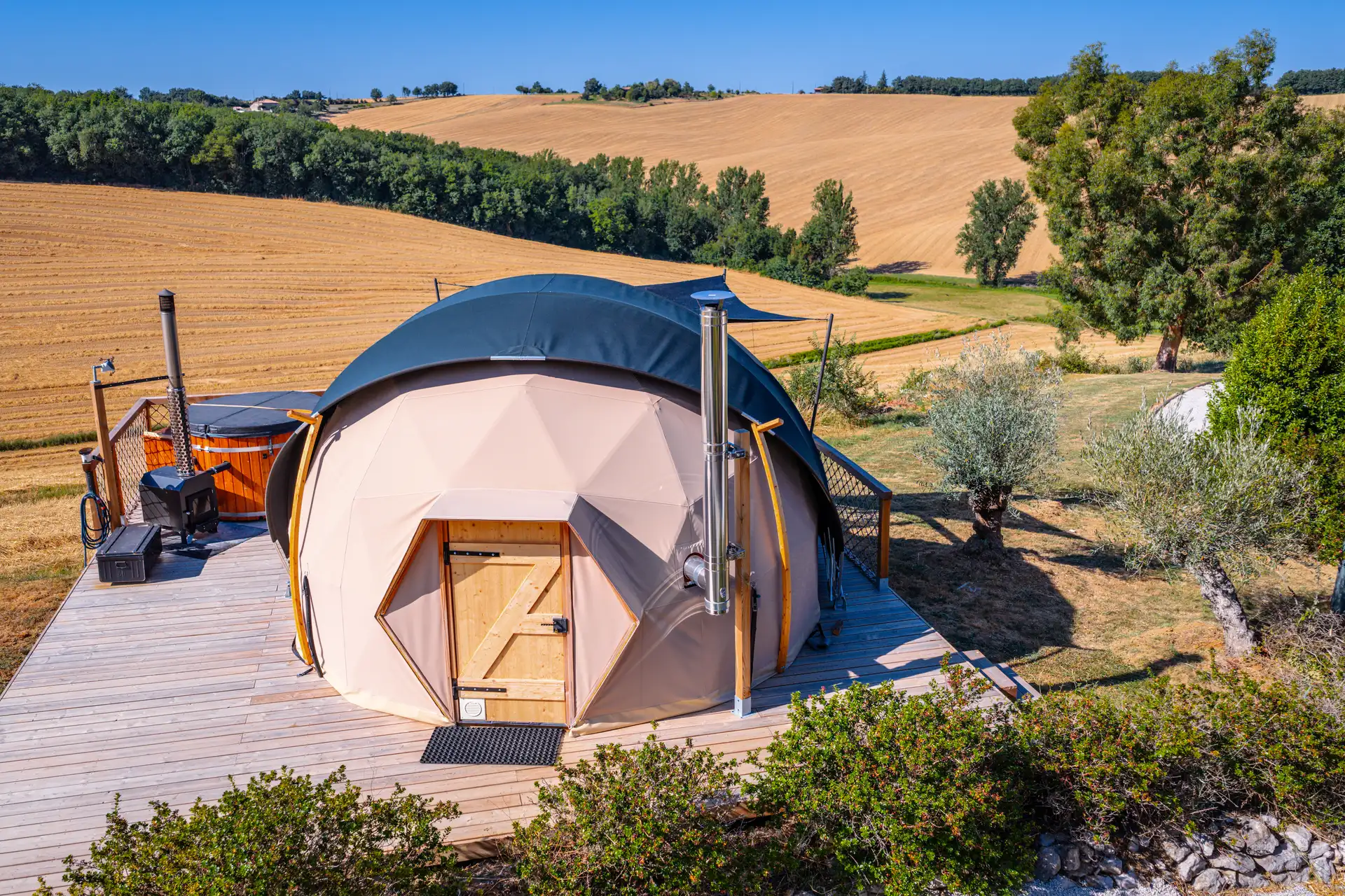 Oui. La Géode bénéficie d’un bain nordique privatif chauffé au feu de bois, réservé uniquement à votre séjour.